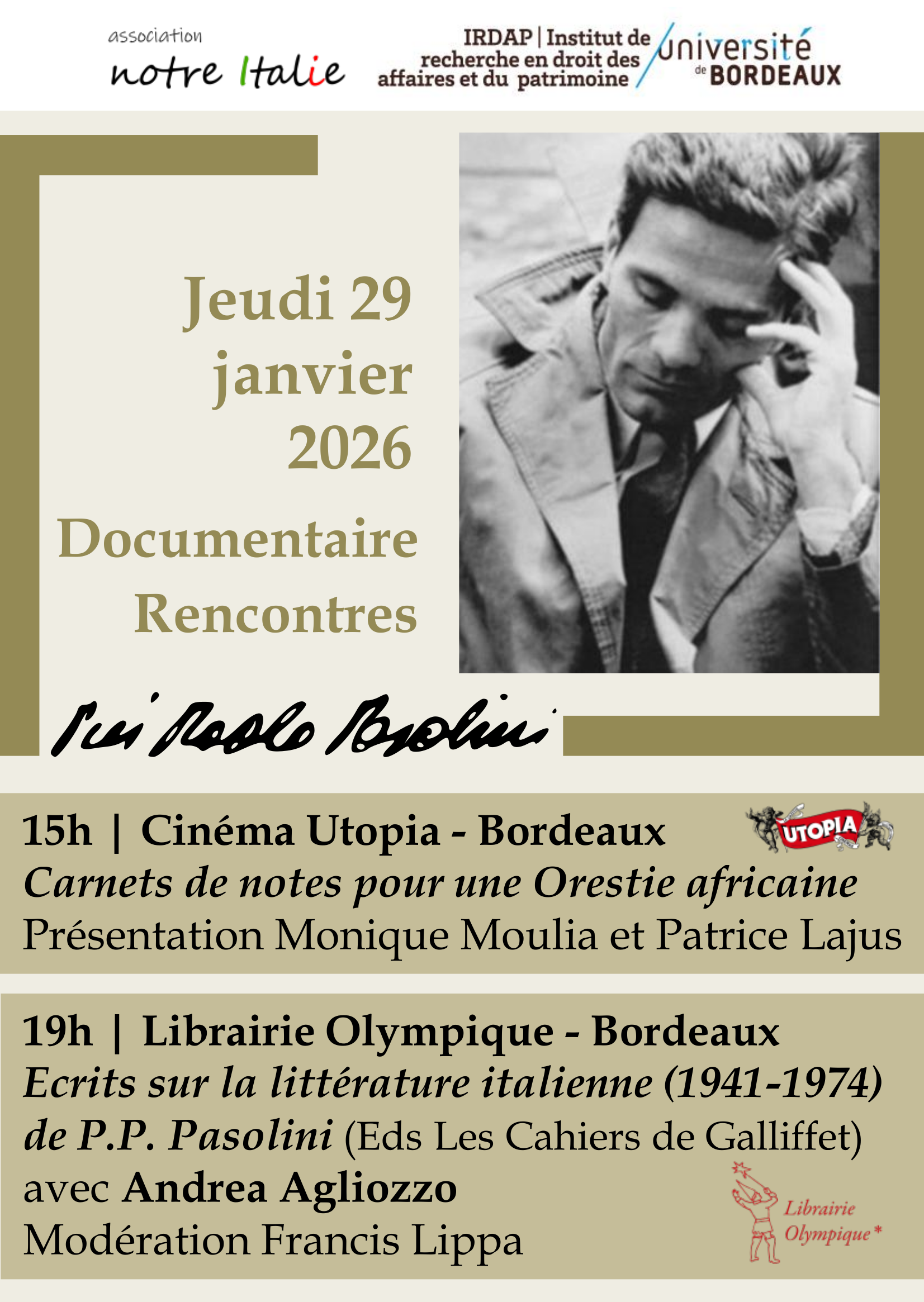 L'IRDAP et l'Association Notre Italie vous convient à la journée d'hommage à Pasolini: